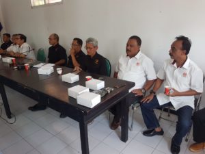 Mahfud pun mengenalkan jajaran pengurus KONI Kota Batu yang ikut serta menyambut kedatangan pengurus KONI Kabupaten Kendal ini. “Semoga saling sharing program kerja ini bisa semakin meningkatkan pelayanan kita dibidang keolahragaan untuk meningkatkan prestasi olahraga di kota kita,” ujar Mahfud.