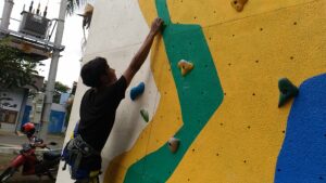 BATU- Penantian panjang atlet panjat tebing Kota Batu untuk memiliki Wall Climbing sendiri akhirnya terwujud. Akhir tahun 2020 lalu, KONI Kota Batu membangunkan sebuah Wall Climbing untuk atlet panjat tebing Kota Batu.